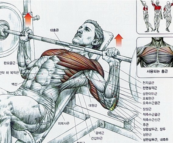 어깨에 힘이 과하게 들어가면 안됩니다 등은 아치형태를 만들어 줍니다 벤치에 등이 일자로 달라 붙으면 안되지만,