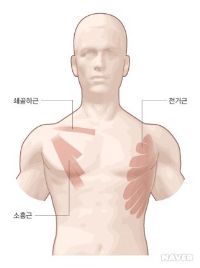 가슴의 근육은 팔을 앞으로 미는 역할을 하는 근육이다. 팔을 미는 각도에 따라 대흉근 및 전거근이 관여하는 비율이 약간 달라진다. 가슴 근육은 크게 육안으로 관찰이 안 되는 안쪽에 위치한 근육과 겉으로 보이는 대흉근으로 나눌 수 있다. 둘의 공통적인 특징으로는 일상생활에 그 쓰임이 크지 않다는 것이다. 보편적으로 가슴 운동을 할 경우 대흉근 중간부분, 윗부분, 아랫부분 순으로 발달하게 된다. 따라서 가슴의 전반적인 발달을 원하면 시간을 갖고 골고루 꾸준히 운동하는 것이 필요하다.